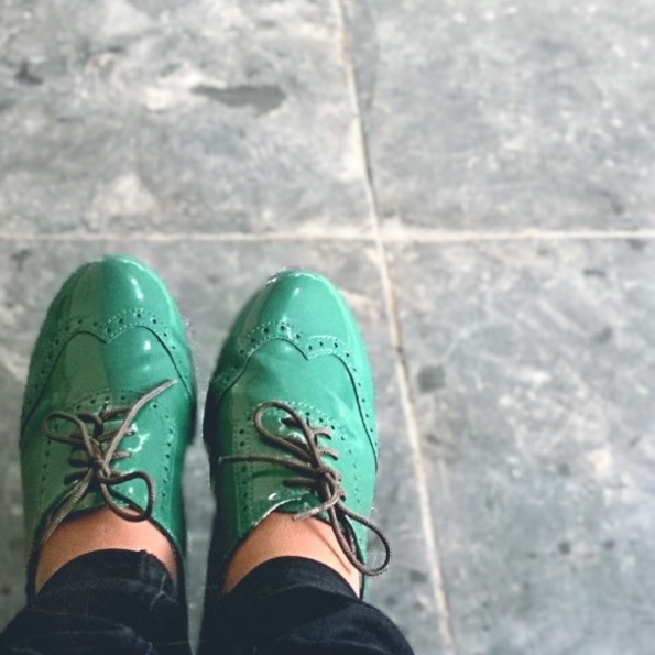 | Tenho verdadeira paixão por esses oxfords em verniz verde. Além de confortáveis (sério posso andar quilometros com eles sem me machucar), são lindos, e combinam com minhas várias roupas pretas. |
